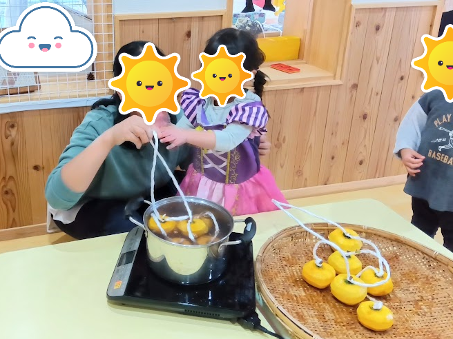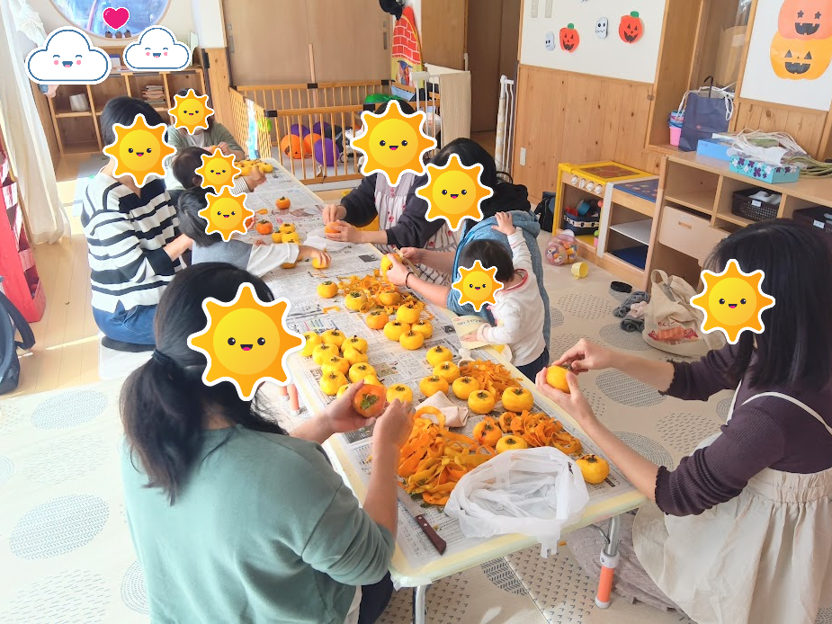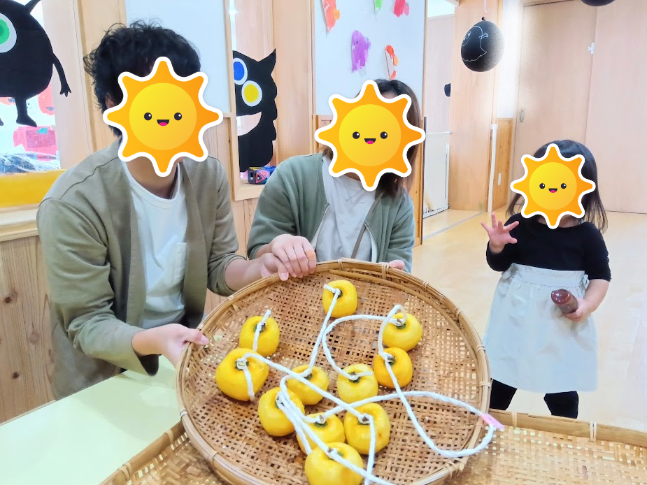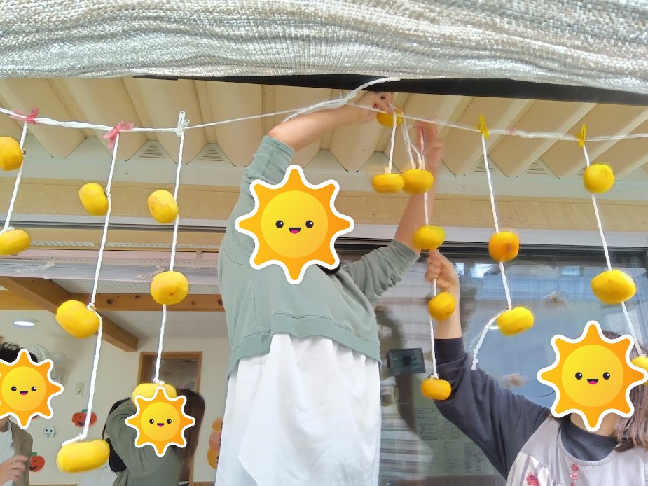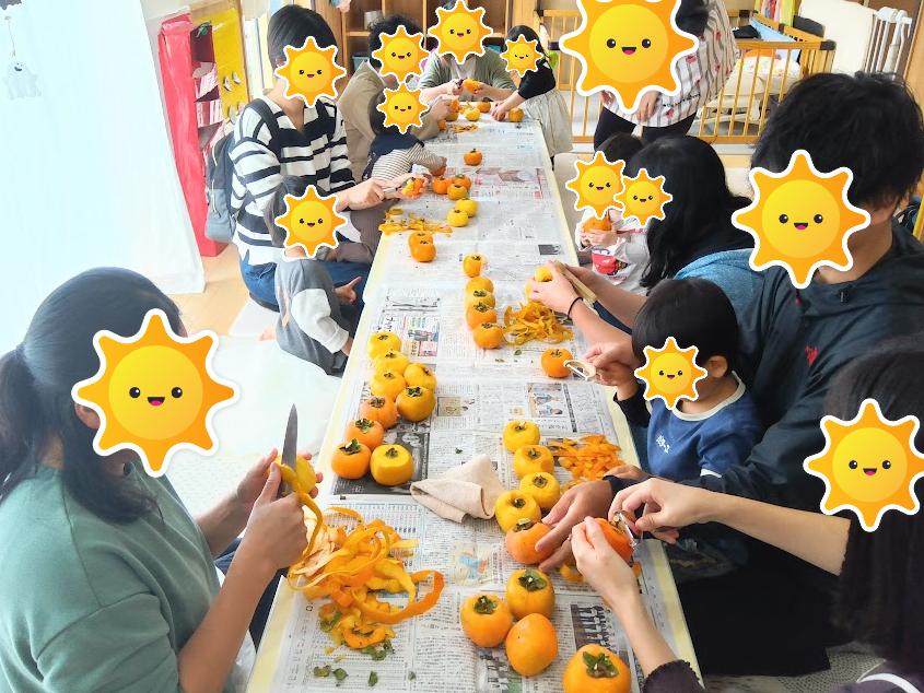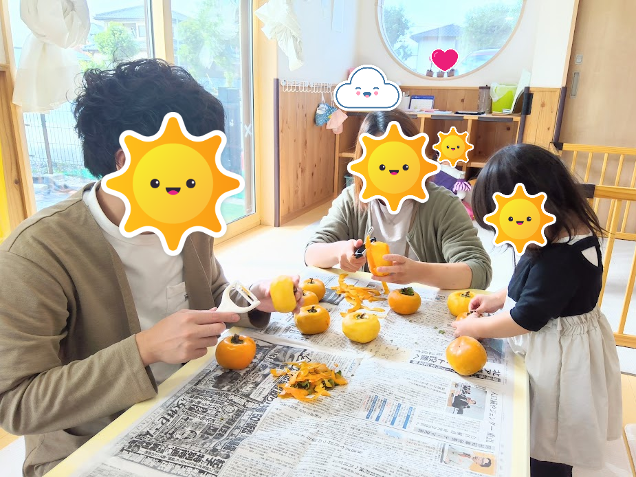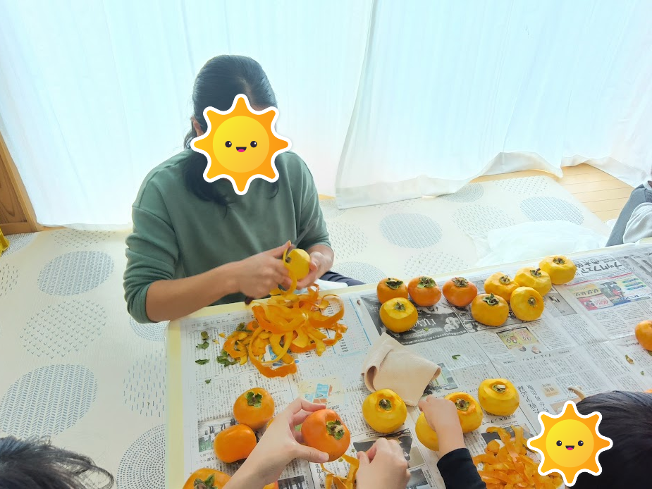 保護者の方々をお誘いして、干し柿作りに挑戦しました🤩