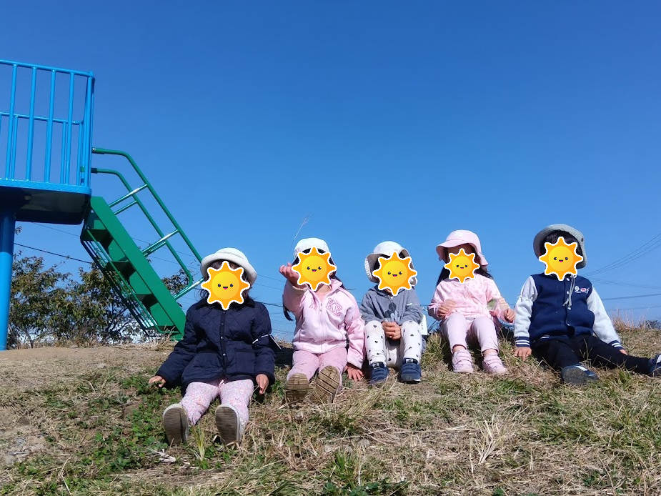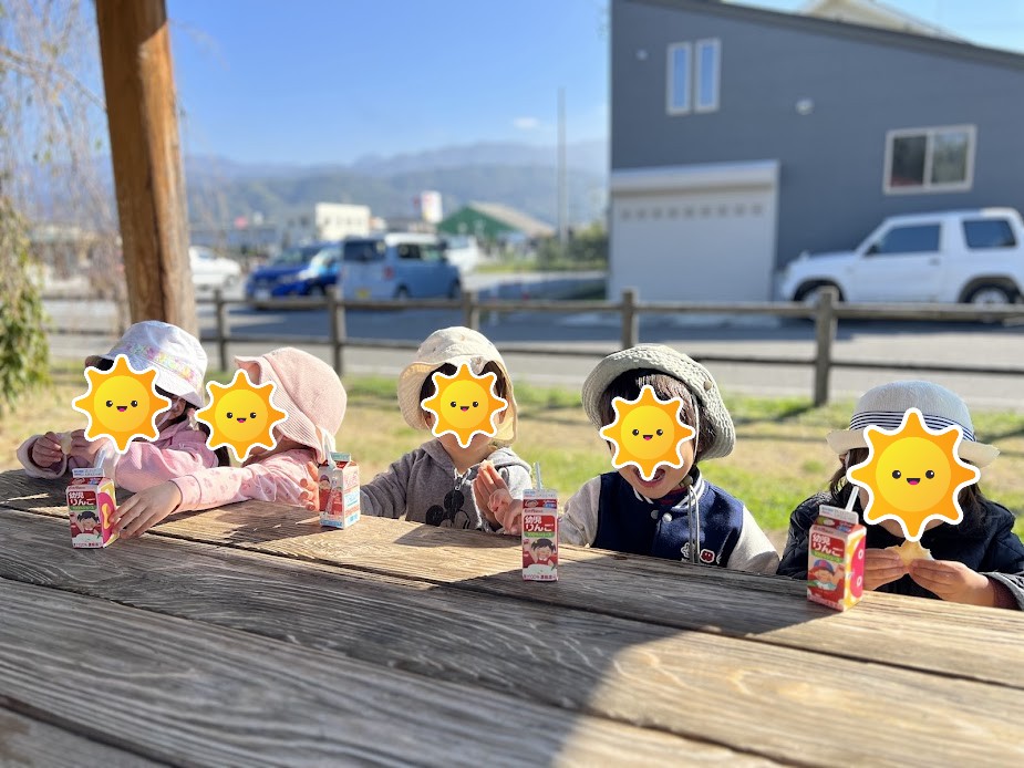 ピカピカの良い天気に恵まれ、気持ち良い気候の中みんなで食べるお弁当、最高~🌞